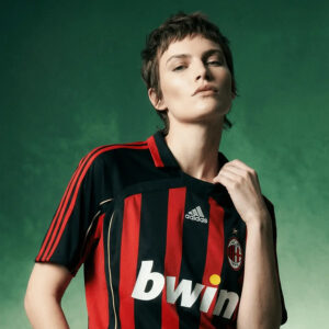 Rossoneri legacy forged in European glory — bold stripes from football’s golden era.