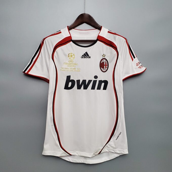 Celebrate AC Milan’s 2006-2007 season with this classic away retro Football Shirts. Featuring a sleek white design with bold black and red accents, this jersey embodies the iconic style of the Rossoneri during a notable period.