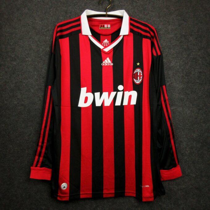 Celebrate AC Milan’s 2009-2010 season with this classic home Football Shirts in a long sleeve design. Featuring the iconic red and black stripes, this jersey embodies the rich tradition and winning spirit of the Rossoneri during a competitive season in Serie A.